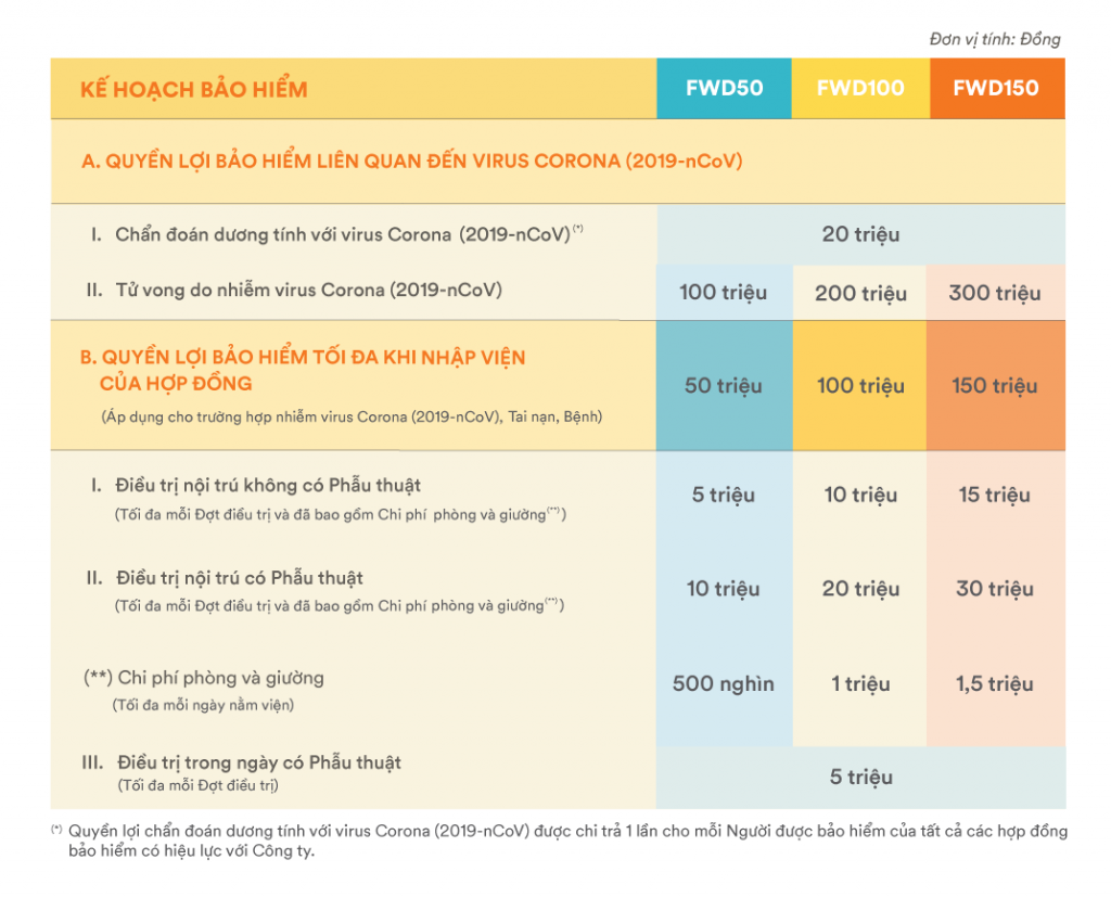 FWD cũng miễn áp dụng thời gian chờ 30 ngày cho các quyền lợi liên quan đến virus Corona.
